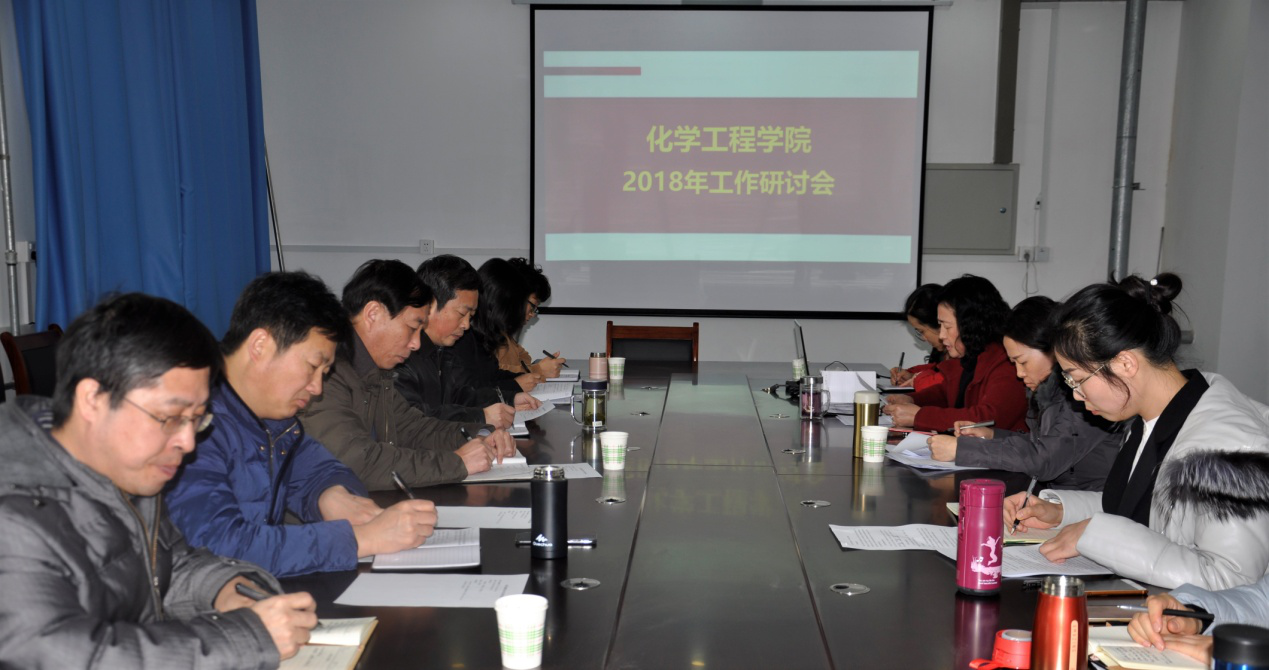 2018年3月6日下午,化学工程学院在化工楼会议室召开了2018年新学期主要工作研讨会。会议由吴明银院长主持,孙学斋书记、学院领导、系室负责人参加了会议。
