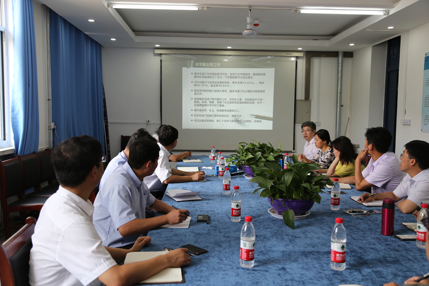 2016年7月6日,中国石油大学胜利学院院长刘衍聪,携学院教学科研处处长周西臣、副处长李军、学院办公室主任杜以华、副主任沙斌、人事处副处长孟贵宾一行六人,冒着酷暑来到化学工程学院进行走访调研。化学工程学院党总支书记侯曙光、副院长于颖敏、史德青及两办主任、党支部书记参加了此次调研活动。