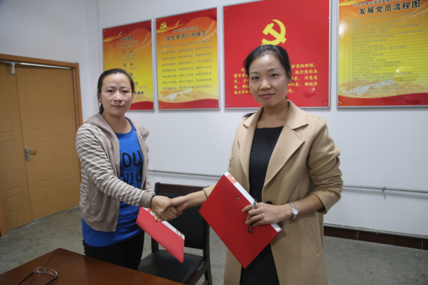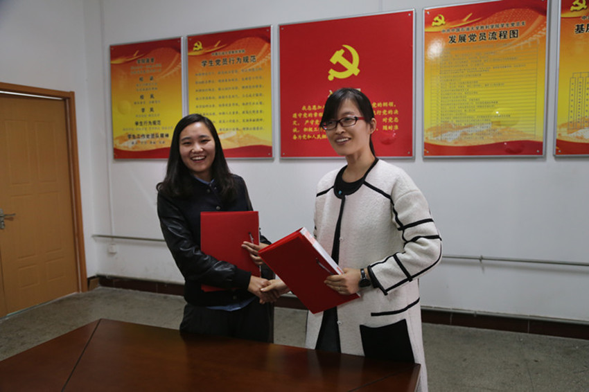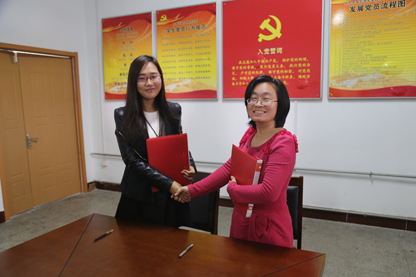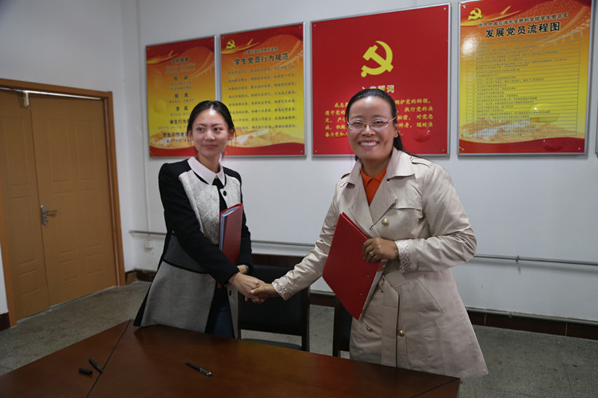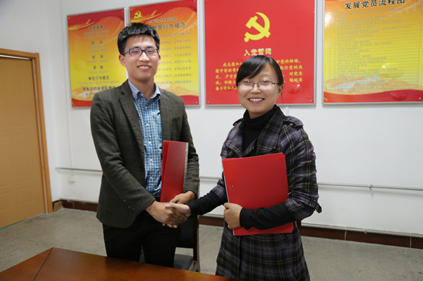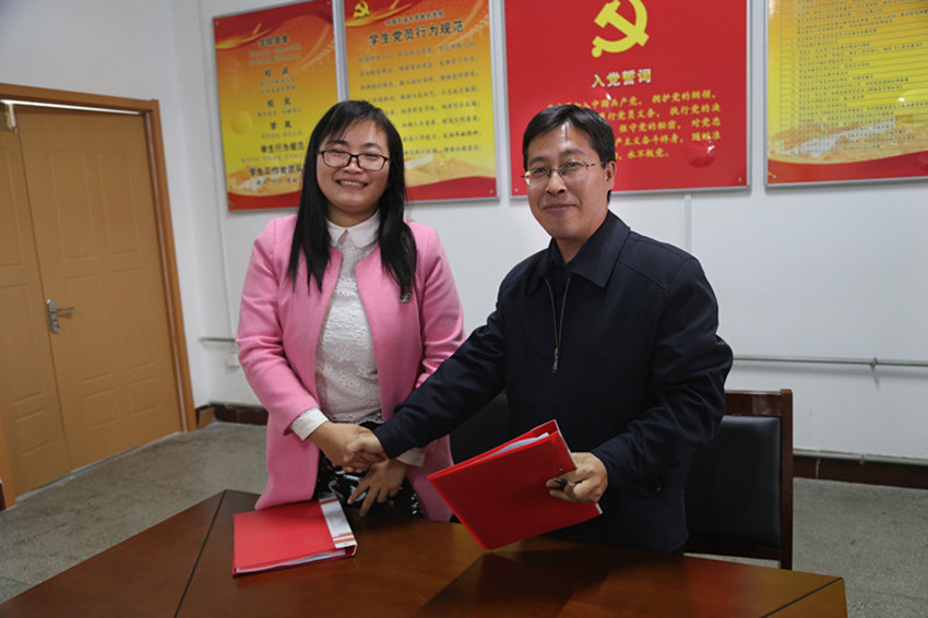首先,于颖敏副院长公布了学院2015年18名“以老带新”的教师名单并对新老教师工作职责、预期目标做了明确的要求。蒋秀燕、苏芳、亓媛媛、张成明作为指导教师和青年教师代表分别作表态发言。随后指导教师和青年教师签订了协议。