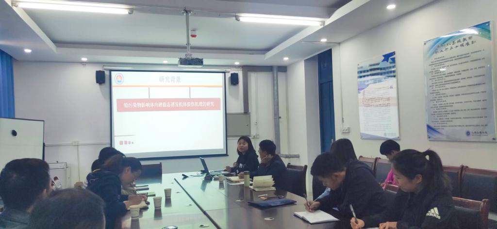 两位领导致辞结束后本次活动正式开始,环境工程系青年教师马文峰、寇明月、张皓禹、李双男、毕梦娇和孟照婷老师进行科研报告,主要内容包括硕士期间的科研及如何应用于东营市的环境现状。