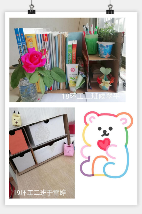 参与本次竞赛的环境工程系的同学们手脑结合,充分发挥自己的想象力与创造力,利用家里用过的饮料瓶、破纸板、包装纸等废弃物,制成了小玩具、装饰品、学习用品等各式各样的小作品,使它们重获新生。