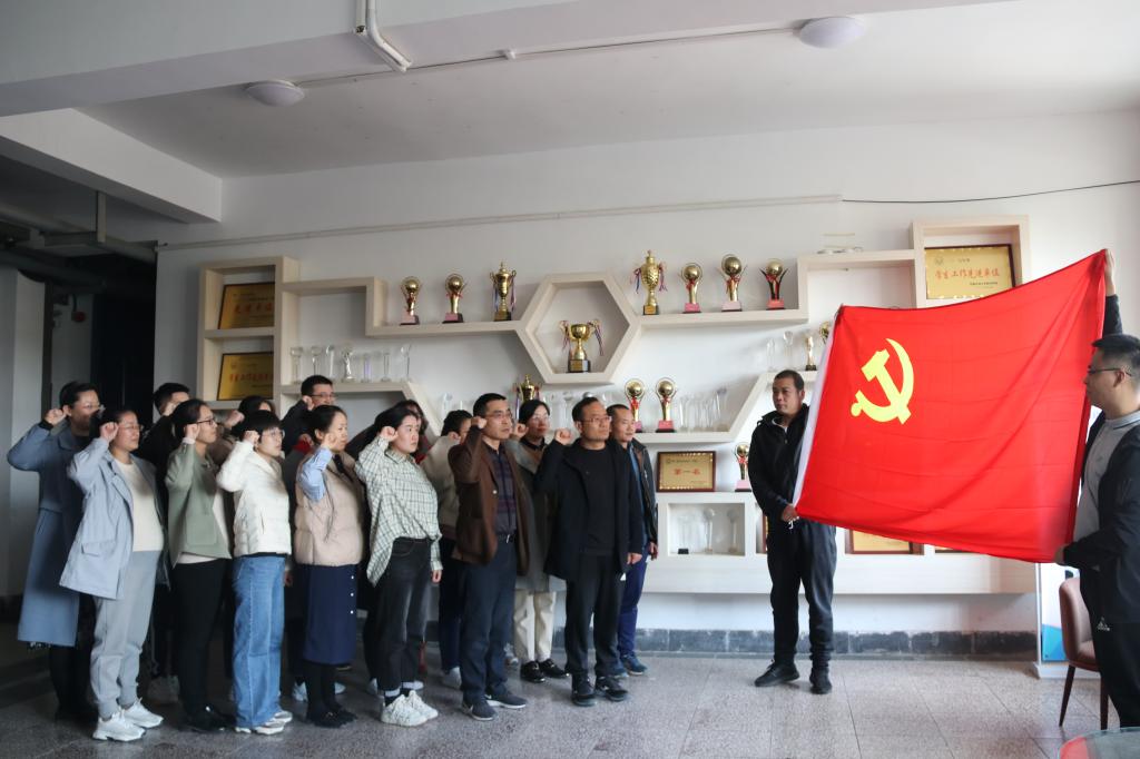 活动由张春晓同志领读入党誓词,全体党员面对鲜艳的党旗,高举右手庄严宣誓,重温自己对党忠诚的誓言,表达了为为共产主义奋斗终身的决心。