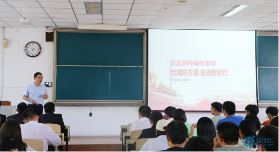 党总支书记祝永胜,以中国改革开放40周年来的伟大实践探索为背景,以“改革变化”为主题,探讨了梦想的崛起、探索的力量、奋斗的重要和未来的美好,并通过交通、生活、饮食、娱乐等方面的对比图,讲述了我国改革开放的发展阶段以及改革开放为中国社会带来的巨变。学工办主任赵欣颖和辅导员老师王子松、俞帅一从深入学习贯彻习近平总书记“七一”重要讲话、厚植爱国主义情怀、加强生命健康教育、弘扬伟大抗疫精神四个方面对已返校的同学进行了开学教育。各专任教师在课堂上也融入了思政教育的内容。