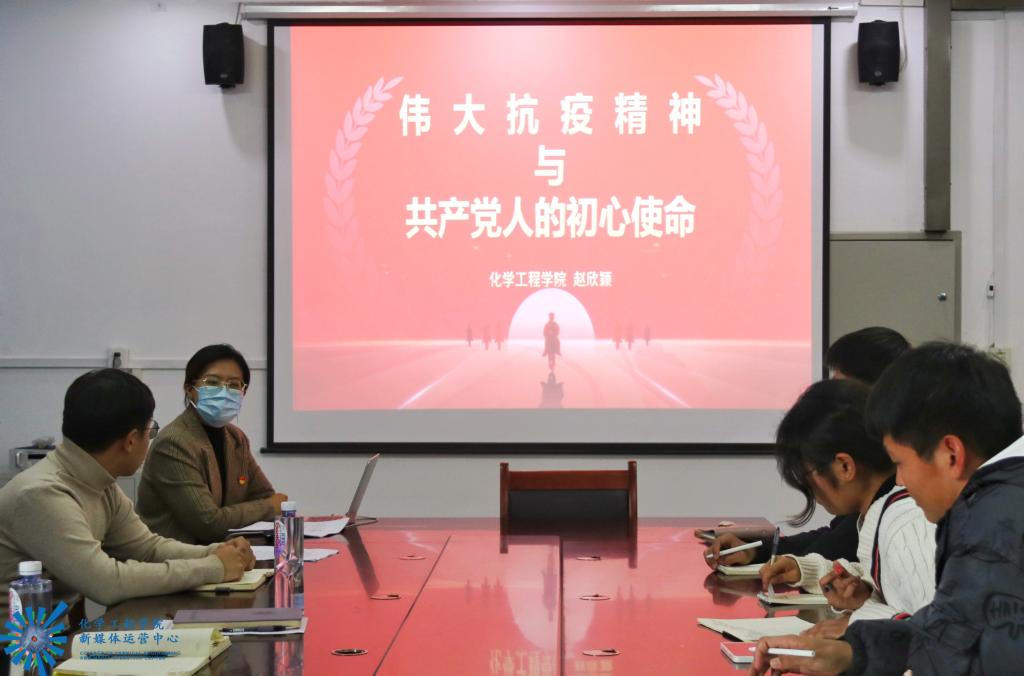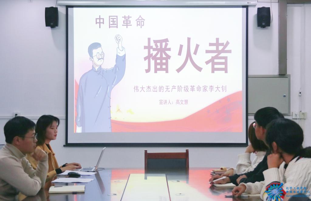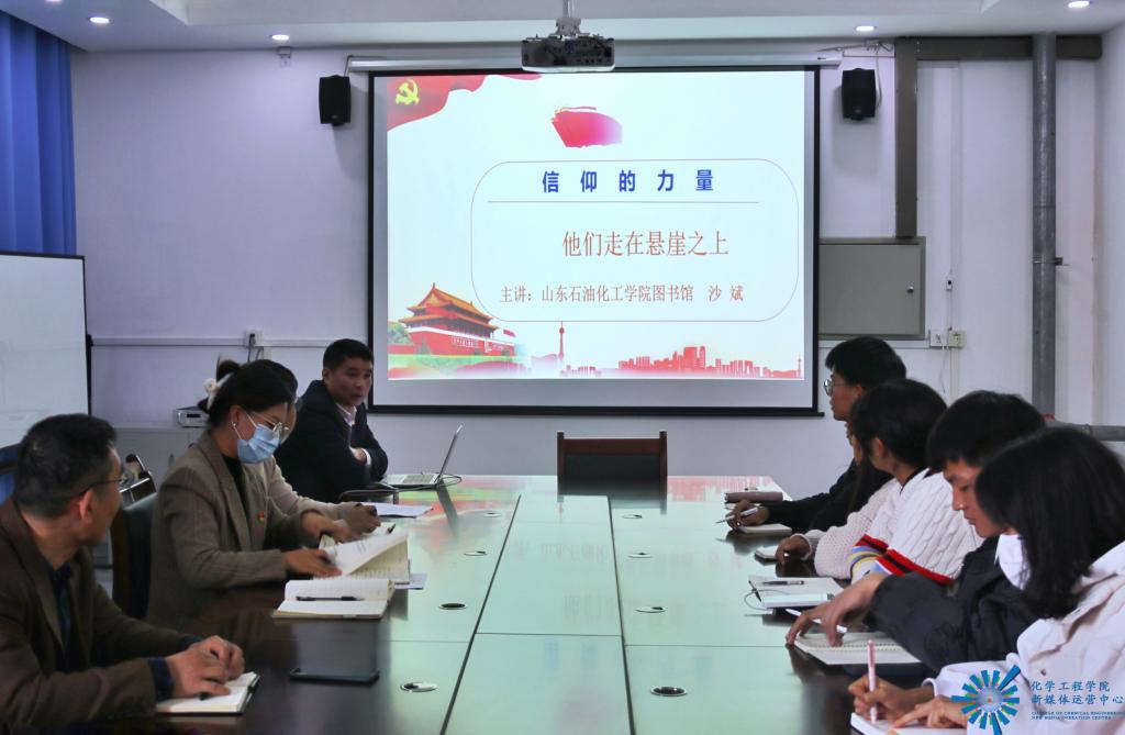 首先由沙斌馆长展开以“信仰的力量—他们在悬崖之上”为主题的宣讲,该宣讲以电影《悬崖之上》为引,讲述了刘伯坚、陈延年、陈乔年等早期革命先驱的伟大事迹,展现了早期革命先辈的崇高理想和伟大的牺牲精神,同时告诫大家珍惜无数革命先烈用生命换来的今天的幸福生活,怀爱国之心,立报国之志。随后赵欣颖老师以“伟大抗疫精神与共产党人的初心使命”为主题进行宣讲,赵老师以抗击疫情为主线,通过习近平总书记在抗疫表彰会上的讲话,对我党的初心与使命加以深刻解读。之后大学生宣讲团的三名同学进行宣讲,基础科学学院高鑫同学讲述了钱学森的求学归国及归国后投身导弹研究的伟大爱国行为;教育与艺术学院高文慧同学以党的早期领导人李大钊先生为主要人物进行宣讲;化学工程学院师鑫义同学讲述了感动中国十大人物对祖国和人民做出的贡献。