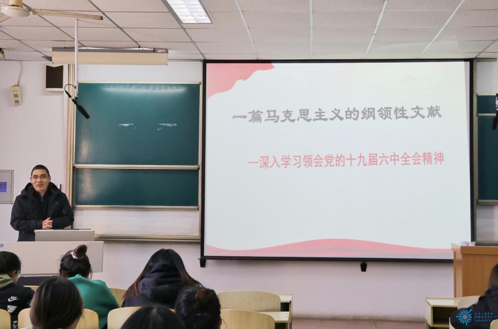 2月22日下午,党总支书记祝永胜在四教4107给学生上了一堂形势与政策课,他围绕“深入学习领会党的十九届六中全会精神,喜迎党的二十大召开”的主题,带领同学们回顾了党的百年奋斗历程以及党领导人民取得的辉煌成就,讲述了中国共产党百年奋斗的历史经验和历史意义,以大量鲜活的事件激发同学们的爱国理想信念,号召广大青年学子勇担时代重任,争当时代新人,做中国特色社会主义合格建设者和贡献者。