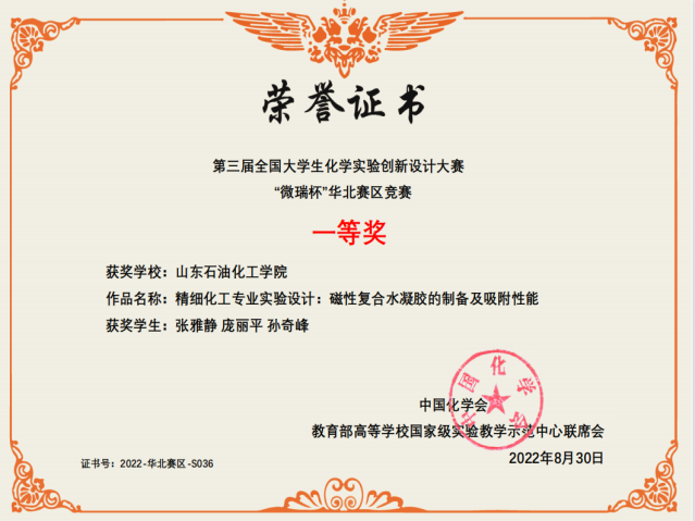 据悉,全国大学生化学实验创新设计大赛是由中国化学会和教育部高等学校国家级实验教学示范中心联席会主办的全国性大学生学科竞赛,是继“全国大学生化学实验邀请赛”后我国高等化学学科面向本科生进行的又一最高级别的比赛。