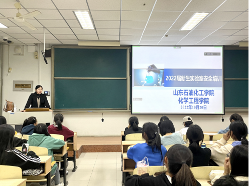 为提高新生实验安全意识、养成良好的安全习惯、保障实验教学工作的顺利开展,2022年10月20日晚,永利23411集团实验教学中心对2022级全体新生开展了实验室安全培训。本次培训由实验教学中心刘霞老师主讲。
