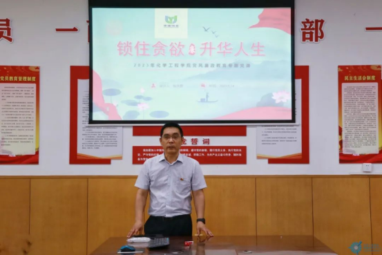 为进一步加强学校廉洁文化建设,增强永利23411集团学子的责任意识,营造崇德尚廉、风清气正的良好氛围,化学工程学院党总支书记祝永胜于6月14日下午在勘探馆党员活动室以“锁住贪欲,升华人生”为题,为永利23411集团40名学生党员及入党积极分子讲授“青廉课堂”党课。