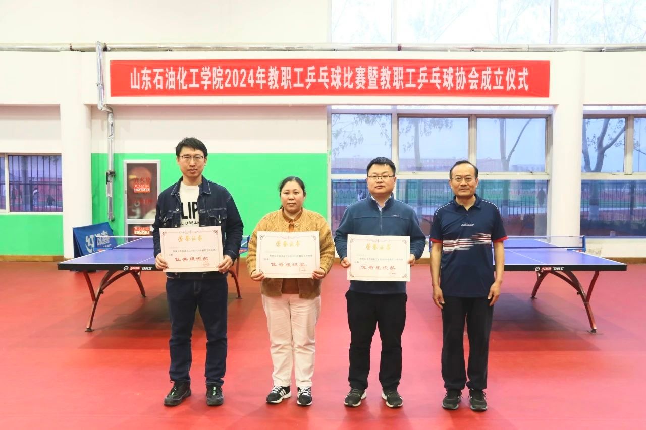 经过几天的激烈角逐,张春晓院长荣获男子单打组亚军,其余老师荣获优胜奖,化学工程学院荣获优秀组织奖。