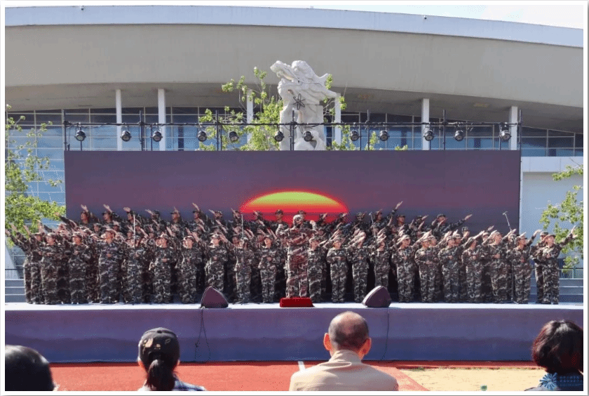 比赛中,各连队身着整齐的迷彩服,以饱满的热情和昂扬的斗志,加入舞蹈动作,结合诗朗诵,给现场观众带来一场视听盛宴。各连教官身着笔挺的军装,齐声高唱《当那一天来临》,雄浑有力的歌声,展现了军人的风采和威严。