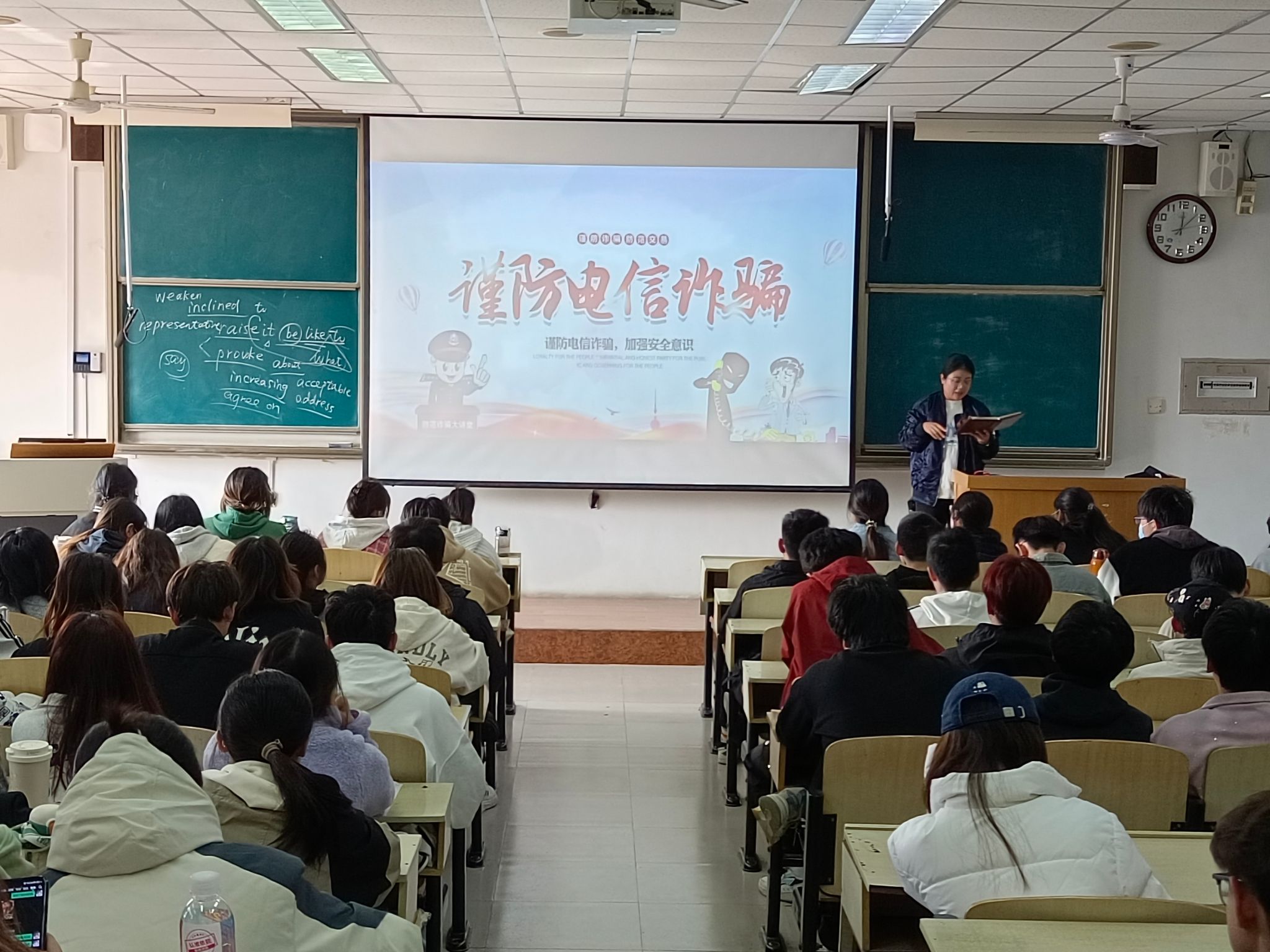 在班会中,辅导员老师通过生动的案例,向同学们详细介绍了各种诈骗手段,包括兼职诈骗、冒充老师借钱诈骗、虚假投资、网络贷款等。一个个真实案例让同学们深刻认识到诈骗的严重性和危害性。同时,老师还向同学们传授了防诈骗的技巧和方法。例如,不随意透露个人信息、不轻信陌生人的信息、不随意点击不明链接等。此外,老师还强调了遇到可疑情况要及时与警方或相关机构联系的重要性。常见的有兼职诈骗,不法分子以高薪兼职为诱饵,让你先交押金或提供个人信息,之后消失不见。还有冒充老师借钱的诈骗,骗子会盗用老师的头像和信息来行骗。大家要提高警惕,不贪图小便宜。遇到涉及金钱交易的情况,多和老师、同学商量。学校保卫处和警方是我们的后盾,一旦有可疑情况,要及时反映。让我们一起在校园内拉起反诈防线,保护好自己的财产安全。