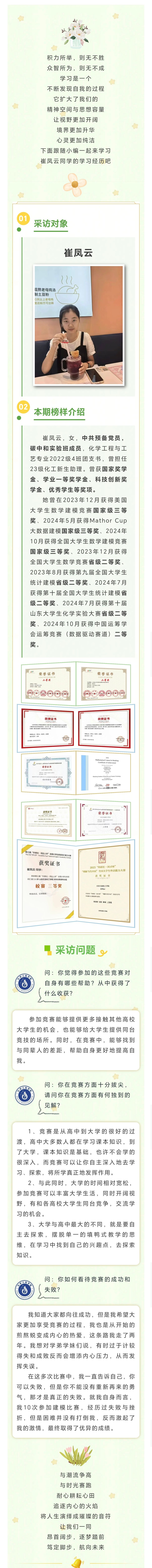 青春风采,化院榜样(六) | 2022级化学工程与工艺专业综测第一崔凤云专访