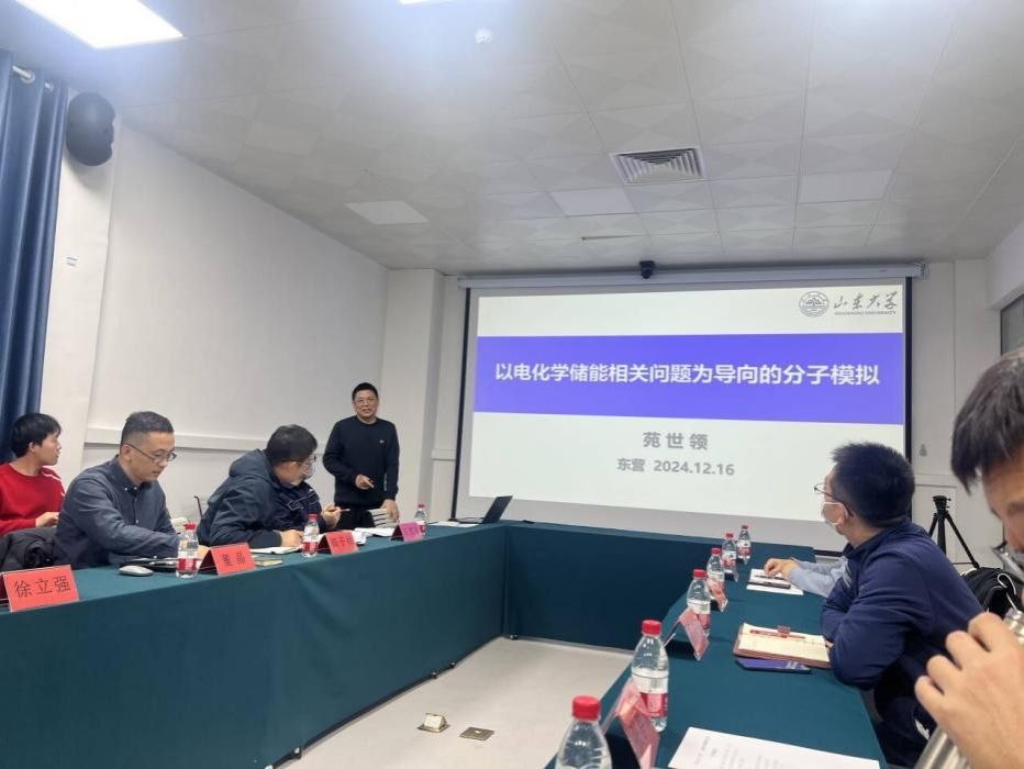 六位专家学者深入剖析了当前电化学储能行业面临的挑战与机遇,详细介绍了新型储能材料的研发进展,包括锂离子电池材料的优化创新、新型催化材料应用、新兴固态电解质材料的性能优势以及钠离子电池材料的应用前景等方面内容。山东大学苑世领教授深入阐释了如何运用分子模拟技术,精准地剖析电化学储能过程中微观层面的奥秘,为解决相关实际问题提供了极具价值的理论依据与模拟策略,让在场师生对分子模拟在该领域的强大助力有了全新的认识。山东大学徐立强教授详细介绍了碱金属/硫二次电池研发的前沿进展,深入解析了电池材料结构与性能之间的内在联系,其研究成果对于推动该类高性能电池的进一步发展与应用具有极为关键的意义,也为后续相关研究指明了方向。山东大学王安良教授讲解了如何巧妙地构筑具有独特性能的纳米材料,并深入探讨了这些材料在催化方面的优异表现,为电化学储能材料的创新与性能提升提供了新颖的思路与方法。