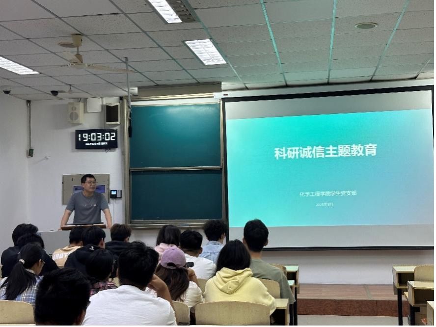 为弘扬科学精神,强化诚信意识,营造严谨求实的科研氛围,化学工程学院学生党支部于2025年5月23日组织全体党员、积极分子开展“科研诚信守初心,学术规范践于行”科研诚信主题教育活动。本次活动由学生党支部副书记郑钧文主持。