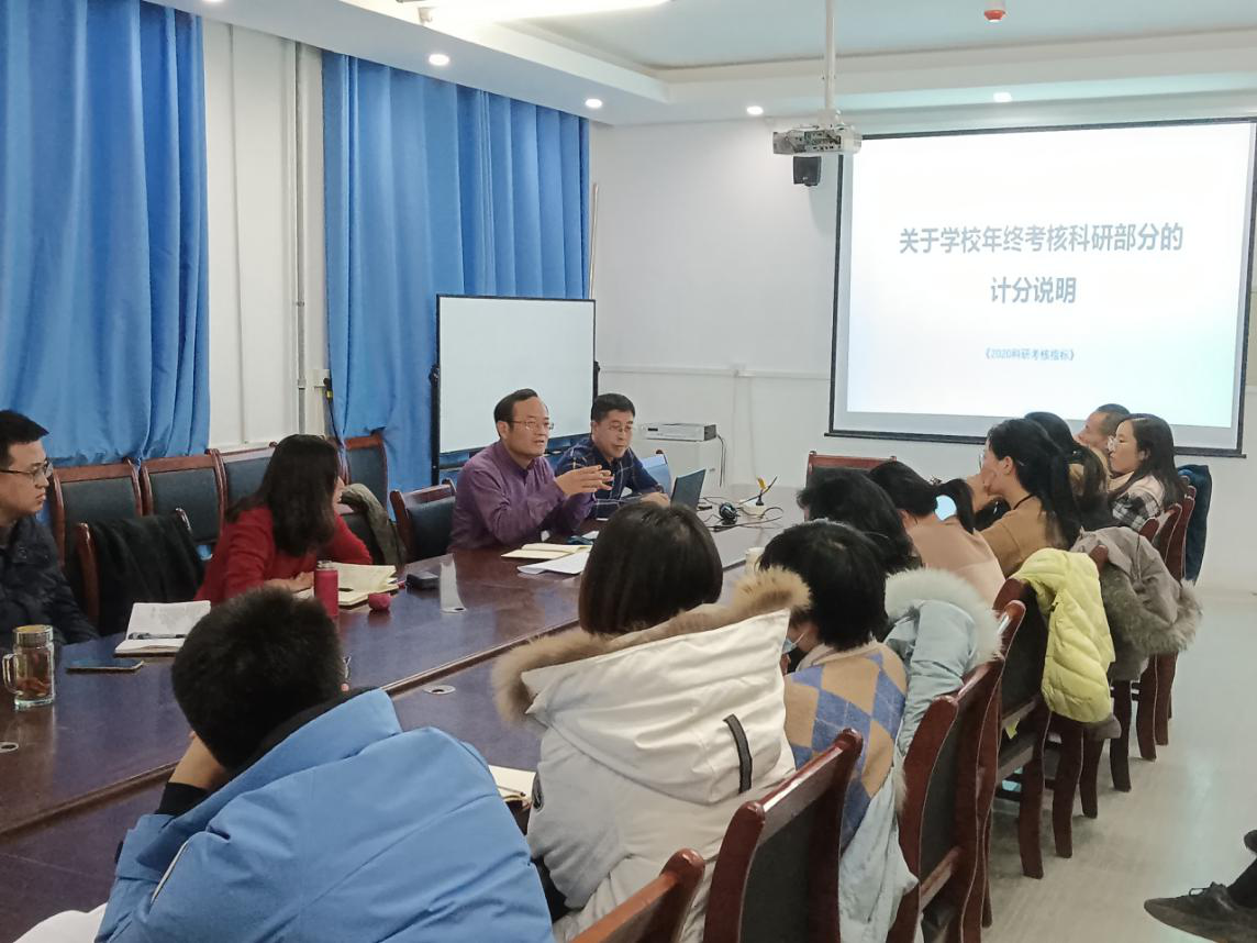 张院长详细解读了学校年终考核科研部分、教研部分的计分说明,并由此提出了各位老师下一步科研和教研方面努力的方向和目标。张院长指出,学院转设后各位老师面临着新的机遇和挑战,新的平台也对各位老师提出了新的要求,将来大家要着力提升教学质量,并在科研和教研方面尽早打开局面,取得更多的成果。随后各位老师分别就理论教学、实践教学、科研和教研等工作提出了自己的问题与建议。